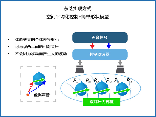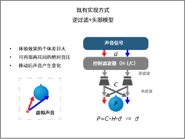 和其他设备的扬声器,均可体验到这种效果。无需准备特殊的扬声器,可使用既有的立体声扬声器,以及小型软件实现这种效果。例如:在笔记本电脑和智能手机上运行的应用程序的声学处理。