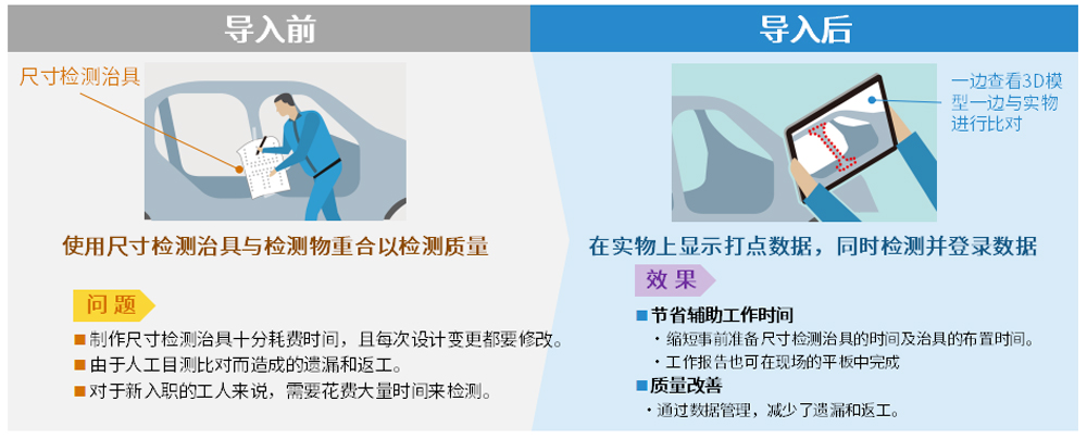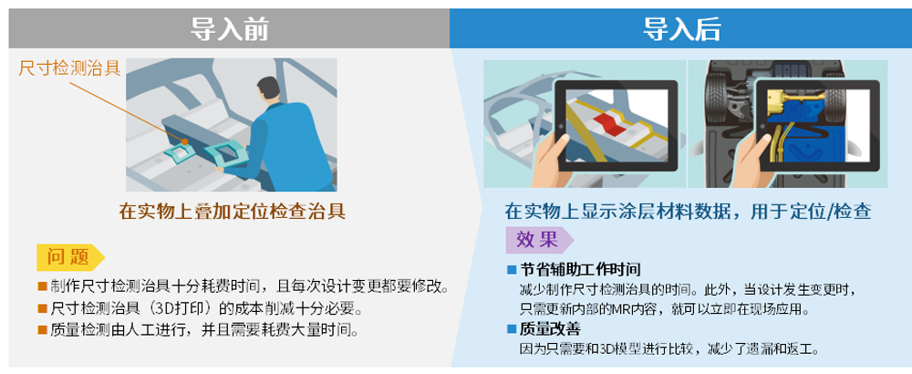 在汽车量产前的试制工序中,对从供应商处收到的零件,使用尺寸检测治具对机械臂焊接的焊缝进行质量检查时使用MR来进行质量抽查。