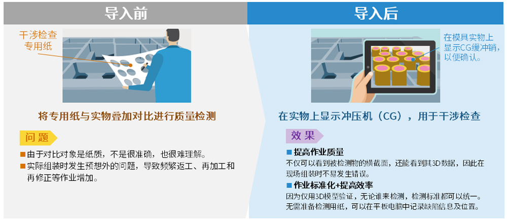 通过在生产金属模具的过程中用冲压机的图纸(专用纸)覆盖模具的背面来检查冲压机的缓冲销和模具之间是否契合。