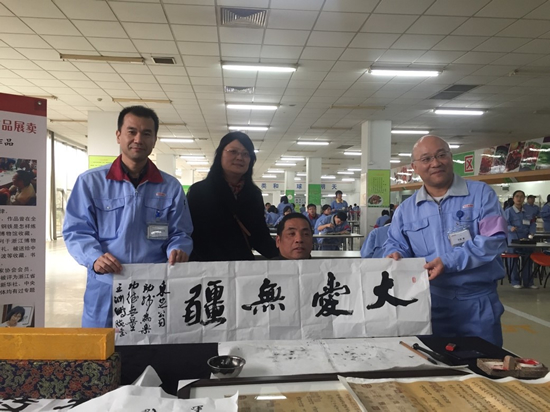 【图:残疾人艺术家王渊鹏老师亲笔题写“大爱无疆”赠予德赢vwin8868官网杭州地区分公司】