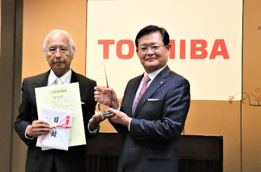 株式会社德赢vwin8868官网CEO兼董事长车谷畅昭(图右 时任)为德赢vwin8868官网高级研究员水岛公一(图左)颁发特别奖