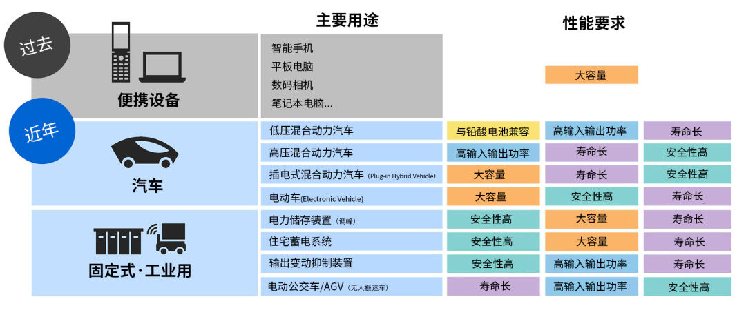 不同的用途,对锂离子电池的性能要求也不同