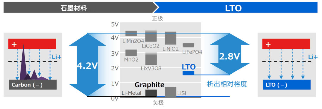 ●LTO负极的优点(1):理论上不会析出金属锂,内部短路风险较低